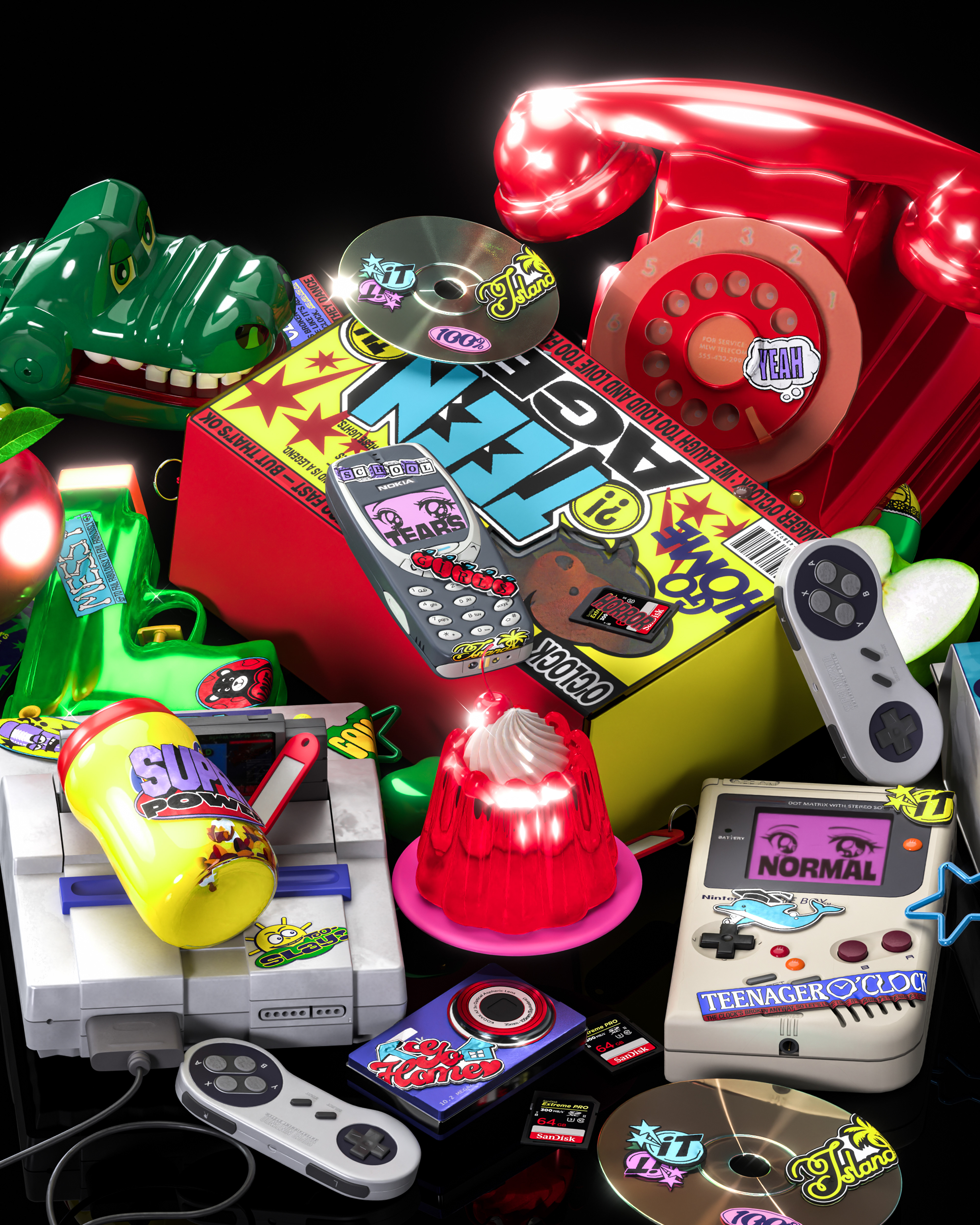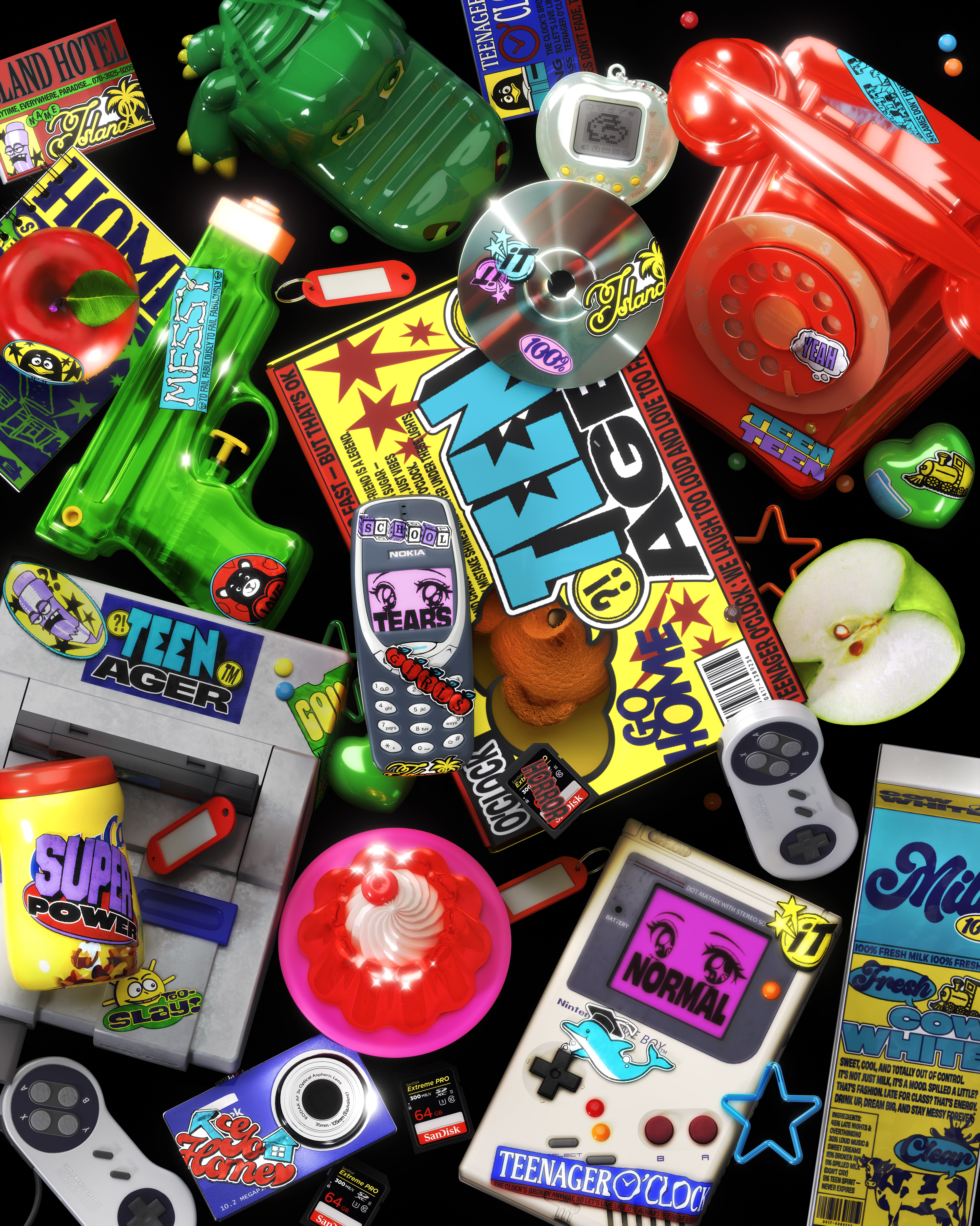 키치한 오브젝트의 반복적 배치를 통해 억눌림과 폭발, 통제되지 않는 감정의 파동 등을 시각적으로 표현했으며, 감정적인 상태 자체를 하나의 텍스처로 다루려는 시도가 담긴 개인 작업입니다.